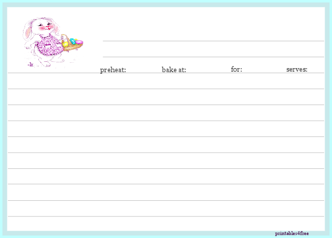 Lined Easter Recipe Cards -3x5, 4x6, 5x7